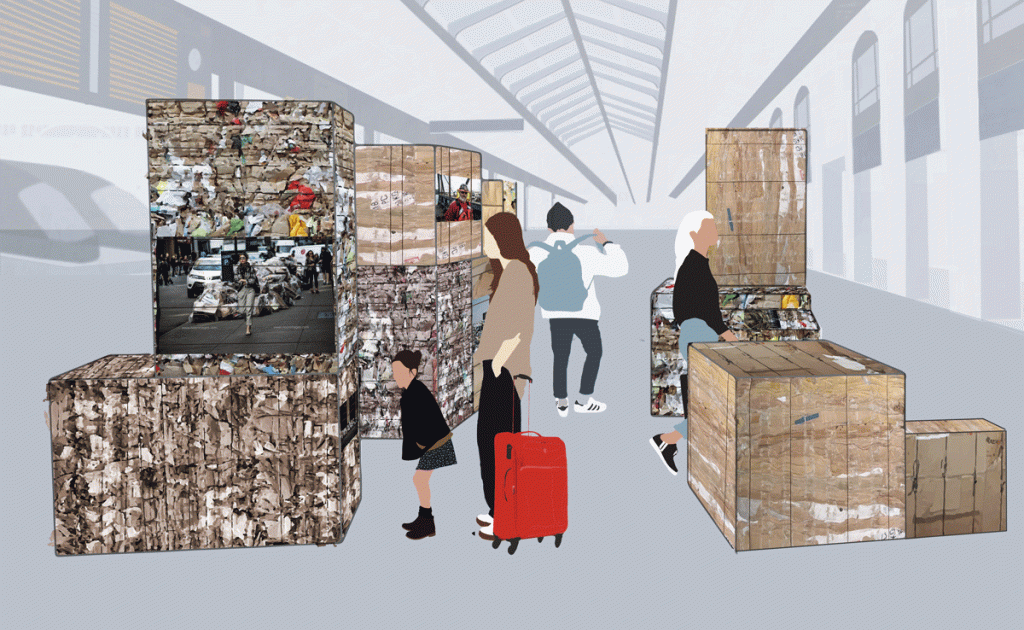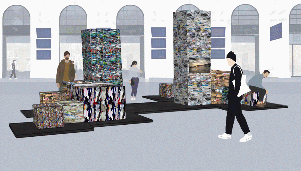 Exposition photographique de NOORIMAGES, un collectif de photojournalistes travaillant sur les inégalités. Ici nous avons décidé de n’exposer des photographies montrant la pollution dans le monde en en particulier des mégalopoles les plus polluantes. Les photographies sont exposées sur des balles de déchets pour avoir plus d’impact sur les visiteurs de la gare Saint Lazare. Cette installation prendra la forme d’un mobilier urbain ou les passants pourront s’installer.