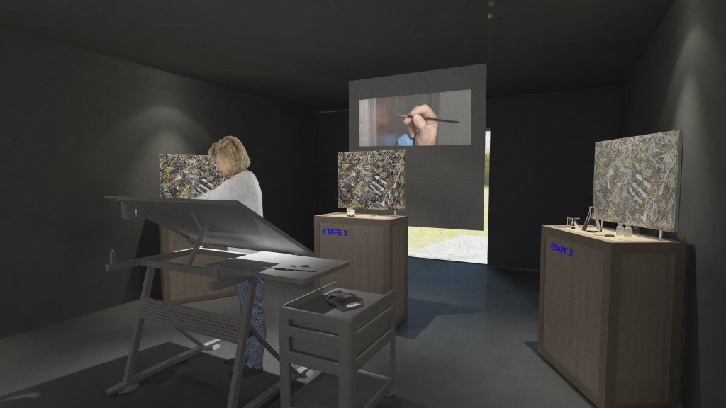 «Un pas dans l’ombre » met en lumière les savoir-faire détenus pas les restaurateurs et conservateurs cachés en réserves. L’exposition est formée par : le sanctuaire, où les œuvres se détériorent durant l’exposition, enfermées dans des écosystèmes. L’archive qui expose et conserve les objets et la trace des œuvres éphémères. Enfin l’atelier qui met à l’honneur le travail de restauration d’une œuvre. Cette exposition permet donc de donner une place plus importante à ces métiers au sein du musée, en les rendant visible.