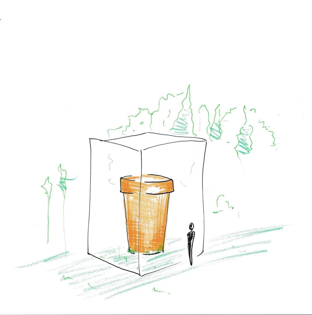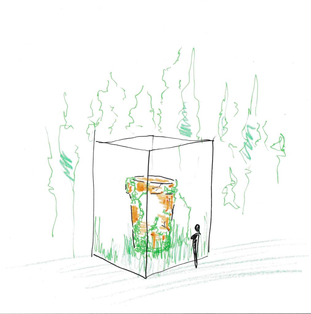 Recherches en croquis, puis recherches en 3D : Sanctuaire